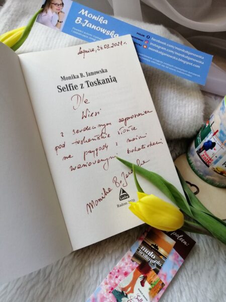 Jedziemy na dziesięciodniową wycieczkę do Toskanii. Piękno tej krainy zachwyca, miałam wrażenie, że razem z bohaterami przemierzam te pełne uroku miasteczka, zabytki, uliczki, widoki. I razem z nimi delektowałam się niesamowitą włoską kuchnią i winami, aż ślinka leciała. Akcja powieści toczy się swoim rytmem intryguje i niesie spore emocje. Fabuła dopracowana, ukazuje skomplikowane relacje międzyludzkie, autorka często wraca do przeszłości naszych bohaterek, przez co możemy na nie spojrzeć z szerszej perspektywy. Styl Pani Moniki jest bardzo lekki, płynni, plastyczny, barwny. Czuć miłość i pasję autorki do opisywanych miejsc, jest szczerze, realnie i z niesłabnącym poczuciem humoru. Głośne wybuchy śmiechu gwarantowane 🙂 Na uwagę zwracają dialogi, są bardzo płynne, a cięte riposty, zawsze trafione w punk, robią wrażenie. Rozmowy telefoniczne między przyjaciółkami są zaskakujące. Rewelacyjnie ukazani bohaterowie, to zwykli ludzie, jakich mijamy w naszej codzienności. Z bagażem życiowych doświadczeń, wadami i zaletami. Samo, mało przewidywalne, życie. Dziewczyny skradły moje serce od razu, Bardzo różnią się od siebie, mają zupełnie inne osobowości i charaktery, łączy je ogromna przyjaźń i poczucie humoru.