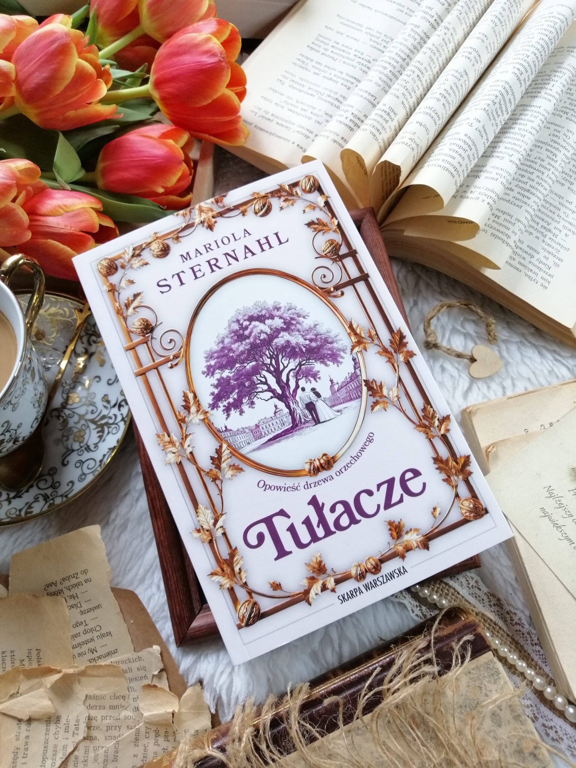„Tułacze” to pierwszy tom cyklu „Opowieść drzewa orzechowego”, wciąga cicho, ale nieodwracalnie. Z każdą stroną rośnie napięcie, pojawia się niepokój, lęk o jutro. To historia o stracie i bólu, ale też o nadziei, która choć krucha, nigdy do końca nie gaśnie. O synach porwanych przez bezlitosny wir wojny. O matkach, które każdego dnia nasłuchują wiadomości… tej jednej, najważniejszej. O ziemi, która przechodzi z rąk do rąk, ale wciąż pamięta swoich ludzi. I o Lwowie — mieście, które tutaj żyje. Oddycha, porusza, zostaje w pamięci. Autorka prowadzi nas jego ulicami, pozwala zajrzeć w miejsca, których już nie ma… a które dzięki tej historii na chwilę znów istnieją. To także opowieść o miłości — tej między dwojgiem ludzi, tej rodzinnej, cichej i codziennej. O miłości do tradycji, do miejsca, do ojczyzny. Miłości trudnej, często zranionej, pełnej łez… ale upartej. Trwającej mimo wszystko.
